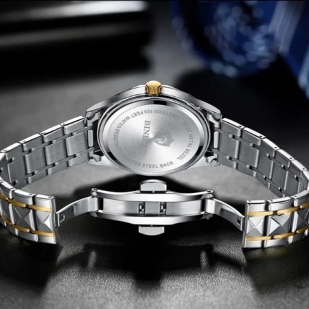 Binbond Cutting men's watch night light dual calendar watch men's quartz watch diamond ceiling glass- Golden